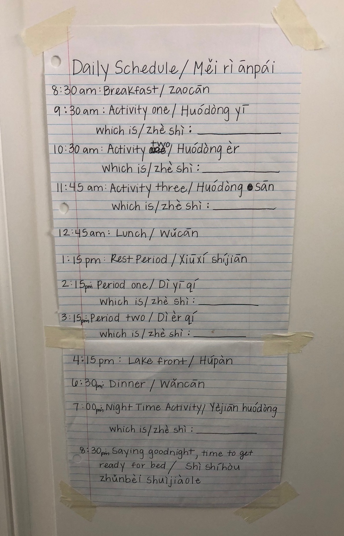 But amidst all this, Oak Lodge took it upon themselves to help out a bunkmate that was even more out of sorts than the rest of them. With their counselors’ assistance and some camp-sanctioned technology, they translated the schedule and attached sticky notes to virtually everything in the cabin, from the mudroom water fountain to the bathroom towel hamper. Jenny might have had the steepest learning curve, but they were all in this together.
