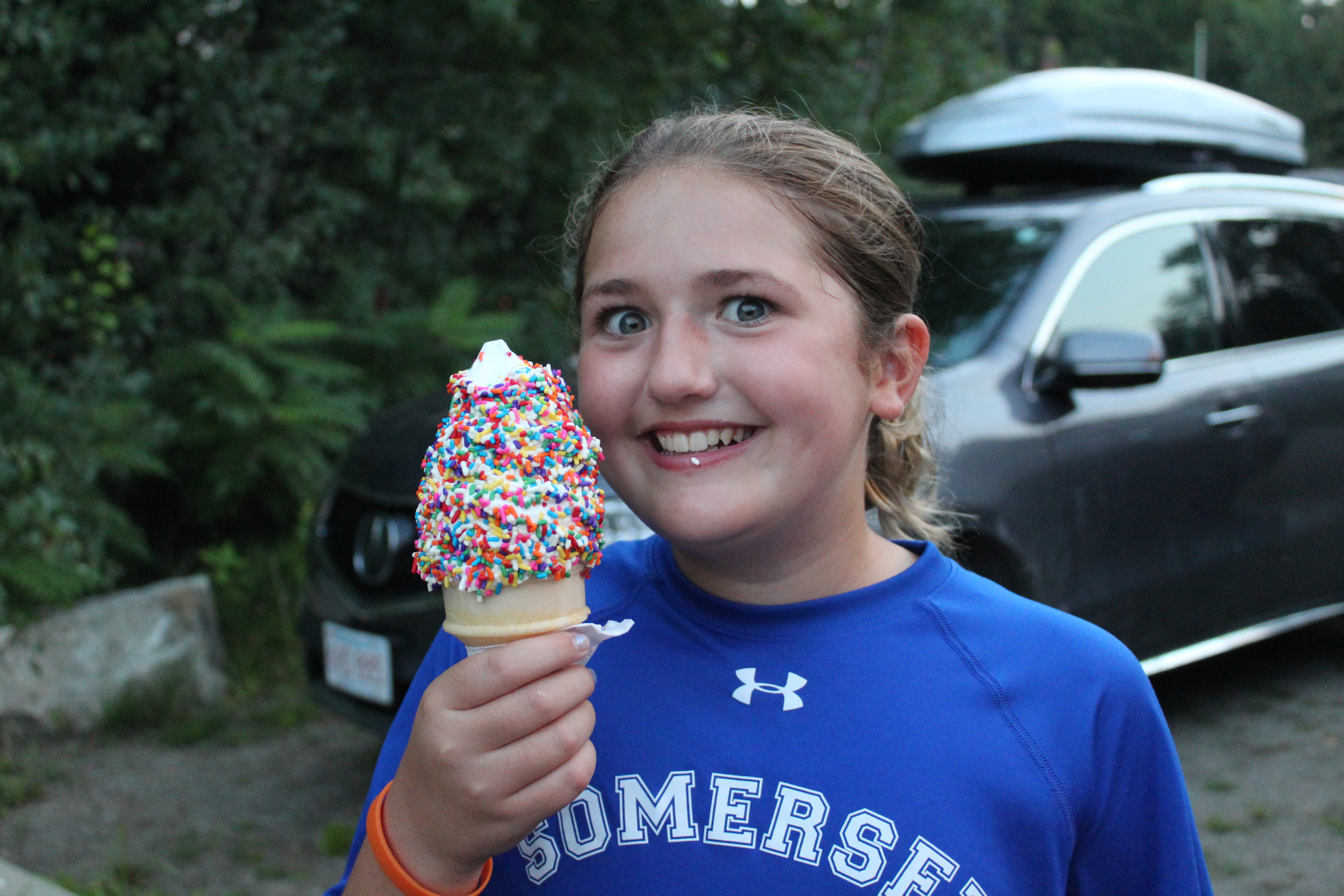 Friday nights end with our ice cream sundae buffet followed by a sunset campfire in the amphitheater. This is a time to reflect, share stories from the week, sing songs, and hand out the weekly patches to the campers who most embodied the Somerset “rings”— for the camper who achieved something spectacular and grew every day…supported someone else and demonstrated what it meant to be a good friend…and made an impact by lifting the spirits of others.
